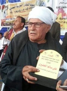 ولذا كنت حريصا جدا على زيارته والجلوس معه لساعات طوال انابشه لإستخراج مالديه من كنوز تراثية أشعار وحكم وأمثال وحكايات من الزمن الجميل والصحراء واسرارها وتعريف أصول البيوت والعائلات والقبائل ورحلات صيد الطيور وتربية الخيول والابل والعادات والتقاليد الخاصة بدورة حياة الإنسان( الميلاد والطهور والخطبة والحنة والزفاف والعلاقات الأ نسانية والقيم والتكافل الإجتماعى فى المأتم والأفراح والزفاف ولم الشمل بالمجالس العرفية . وفنون الحضرة . وعنده من القناعة ومعرفة أمور الدين والحكمة الكثير فهو خريج الكتاتيب ومدرسة الحياة سجلت معه البعض منها ولكن فقدت هاتفى الذى يحتوى على تلك المادة الثرية من الأدب الشفاهى والمعانى السامية من تراثنا الشعبى الأصيل كنت أعد نفسى للسفر للمنيا قريبا واللقيا معه لجمع مادة علمية حول تراثنا وبادية عروس الصعيد فهو يمتلك مكتبة وصندوقا لاسرار التراث يحتوى على الف كتاب وكتاب . وكان موعدنا معه ليفتح لنا رواق الشاعر إبراهيم بوسوكاية الفاخرى هذا الرواق الذى يمتلك فيه مكنز تراثى ثرى حول شخصية الشاعر ومواقفه وحكاياته التى لايعرفها عنه الكثير وأقواله الشعرية فى المدح والهجاء والسخرية والكوميديا لكى ننهل مما لديه من مخزون حول سيرته ومسيرته والتى يمتلك منها الكثير والكثير. ومنها ماقاله فى حق والده سالم بولطرش لحضيرى .